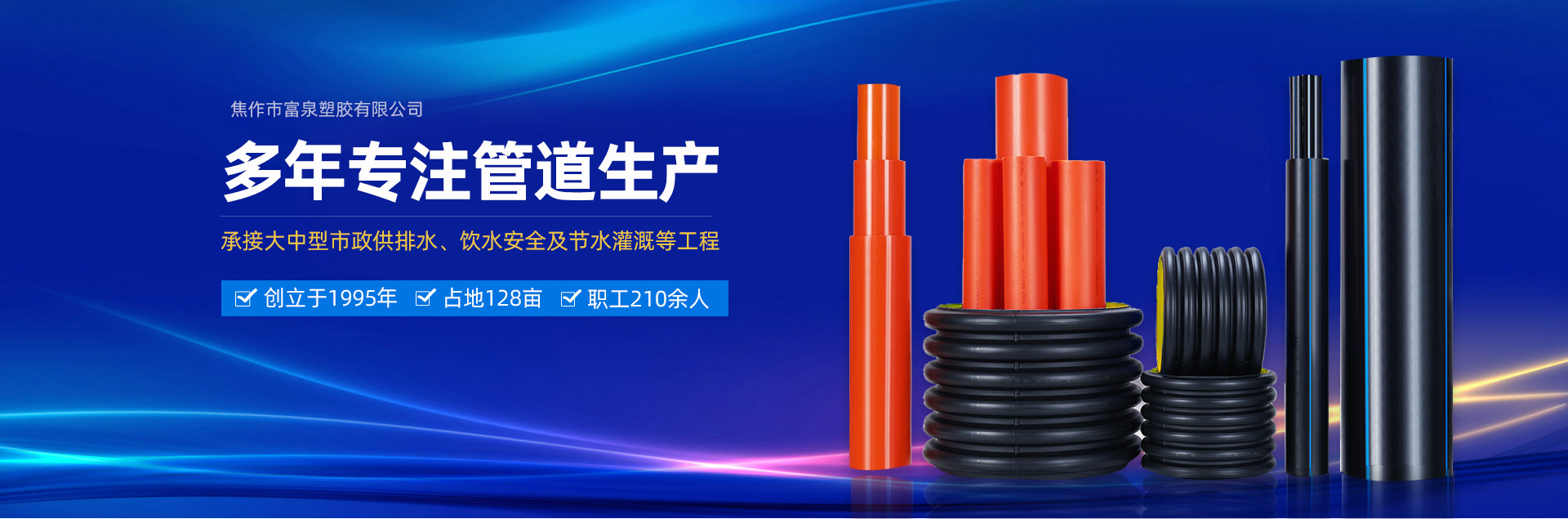 - 焦作市富泉塑膠有限公司,創(chuàng)立于1995年,是一家集研發(fā)、設計、生產、銷售為一體的大型管材企業。公司位于太極故里、黃河之濱一一河南焦作溫縣。公司占地128畝,現有職工210余人,其中具有中技術職稱的19人。生產、檢驗設備58臺(套),包括PVC實壁管生產線11套、PE實壁管生產線12套、HDPE雙壁波紋管生產線6套、PVC雙壁波紋管生產線5套,檢驗設備14臺(套)。主要產品有:Φ20mm-630mm、各種壓力規(guī)格的PVCU、PVC-M、PE給水管材,PVC-U節(jié)水灌溉管材,HDPE燃氣和礦用管材,DN200-800mm的HDPE、PVC雙壁波紋管及各種噴灌、滴灌工程材料。承接大中型市政供排水、飲水安全及節(jié)水灌溉等工程。 富泉塑膠公司重視產品的質量、安全、環(huán)保和節(jié)能,在同行業中率先完成了“新華節(jié)水產品認證”,全方面通過ISO9001:2008國際質量管理體系、IS014001:2004環(huán)境管理體系和OHSAS18001職業健康安全管理體系的一體化導入,并建立起規(guī)范的現代企業管理體系。公司以“質量”為先導,采用質量跟蹤、多環(huán)節(jié)把關的方法,組建具有行業水準的企業技術檢測中心,常年委托水利部節(jié)水灌溉設備檢測中心、河南省產品質量監(jiān)督檢驗院對產品跟蹤檢測,并由中國人民保險公司承保產品質量。公司連續(xù)多年被河南省水利廳確定為“安全飲水設備、節(jié)水灌溉設備”定點生產企業,并獲得“中國名優(yōu)產品”“質量、服務、信譽AAA企業”“河南省**產品”“河南省水利企業”“河南省守合同、重信用企業”等榮譽稱號。 富泉塑膠公司堅持“用戶為上”的服務理念,長期以來,全方面關注客戶價值,不斷提升服務水平。服務隊伍常年為客戶的產品設計、施工、安裝提供合理的方案和全程細致、周到、**、快捷的技術服務。公司自成立以來,一直堅持以人為本的宗旨,塑造企業形象,并致力于新產品的開發(fā),憑借雄厚的技術開發(fā)能力,先進的工藝制造流程,嚴格的質量管理保證體系,優(yōu)良的售后服務網絡,已成為河南省大的飲水、灌溉及排水管材設備制造商。產品暢銷全國,而且還以公司雄厚的綜合實力在業界中占據著重要的地位。